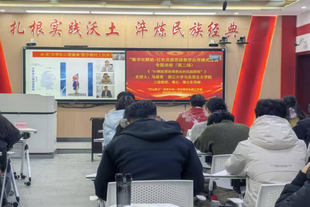 为推动红色资源与思政教学深度融合,以数字化手段激活本土红色基因,破解当前教学中资源转化不充分、技术运用不熟练等问题,进一步提升思政教师利用数字化技术活化本土红色资源的专业素养,2025年11月14日—25日,由自治区“天山英才”教育教学李玲名师工作室主办,新疆理工学院马克思主义学院、阿克苏中等职业技术学校、塔里木职业技术学院马克思主义学院协办的“数字化赋能・红色资源思政教学应用模式探索”系列专家讲座活动成功举办。自治区“天山英才”培育计划—李玲名师工作室全体成员、阿克苏职业技术学院马克思主义学院专兼职思政课教师、阿克苏开放大学教师代表、青马班学生共计100余人通过“线上+线下”相结合的形式同步参加了活动。