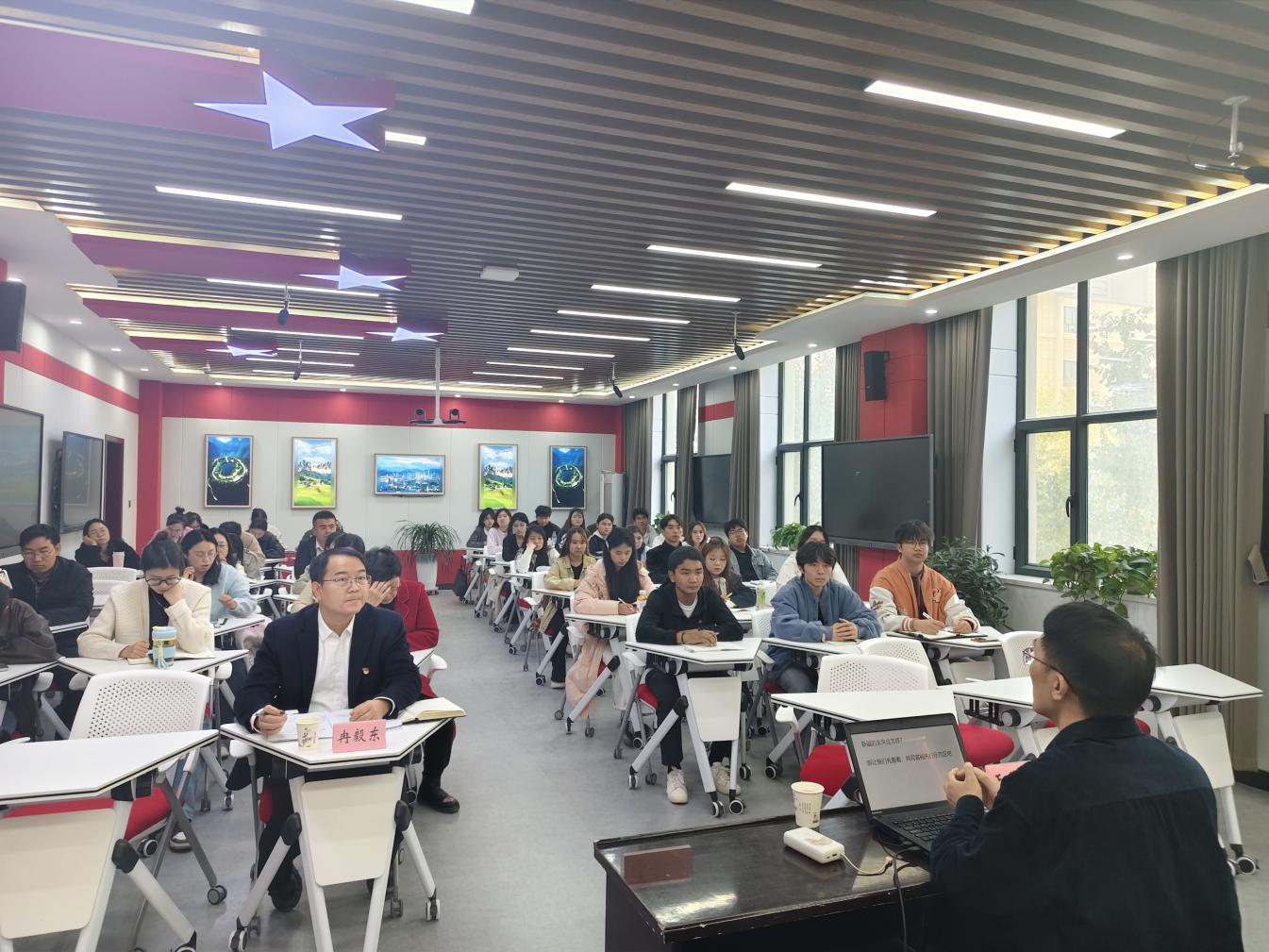 10 月 24 日 下午,由阿克苏职业技术学院马克思主义学院举办的“铸魂润疆·思政融通”大中小学思政课一体化建设第三场活动在笃教楼2楼大思政课教研示范中心启幕。马克思主义学院院长冉毅东主持会议,学院专兼职思政课教师、温宿县第四中学教师代表及青马班学生共计44人共同参会。